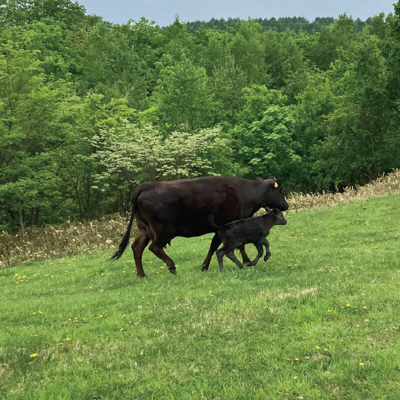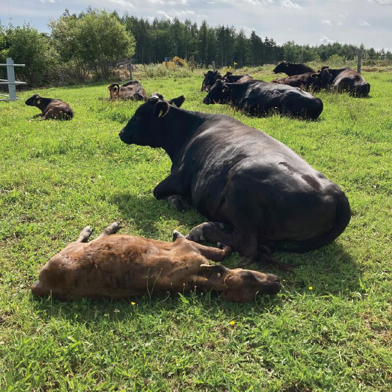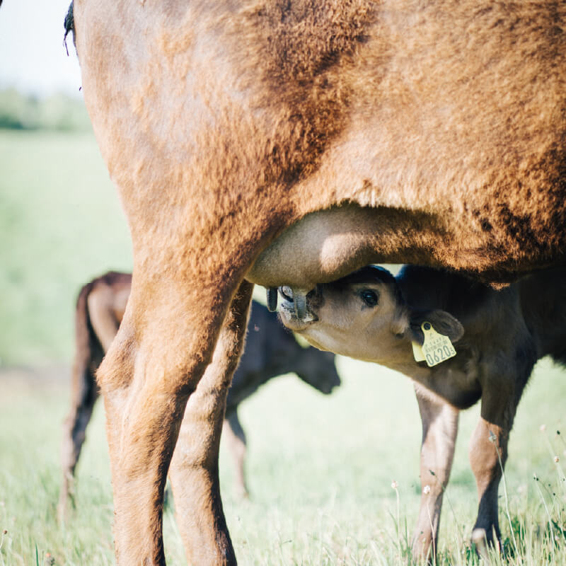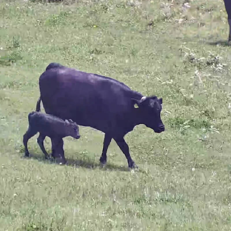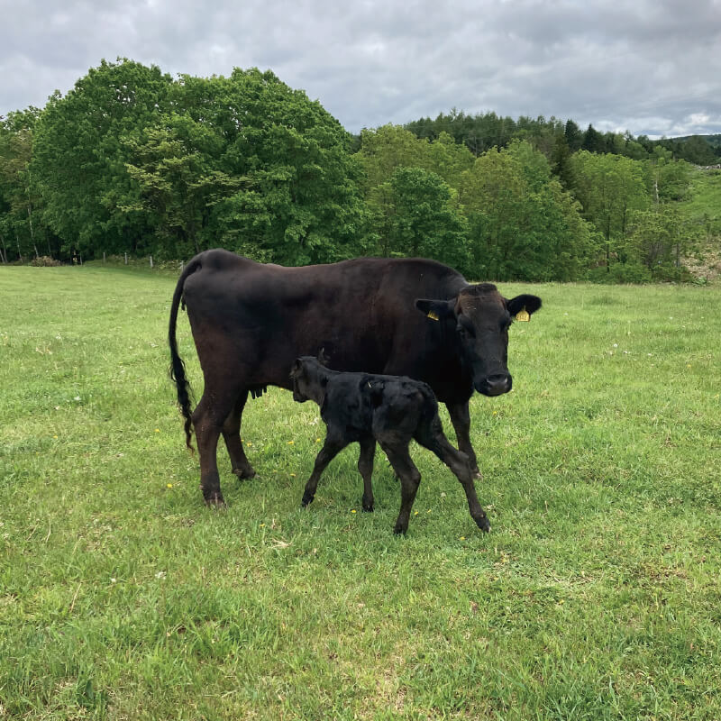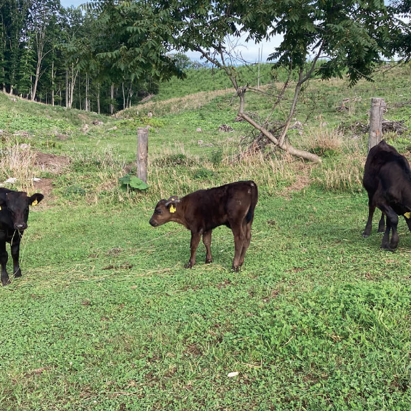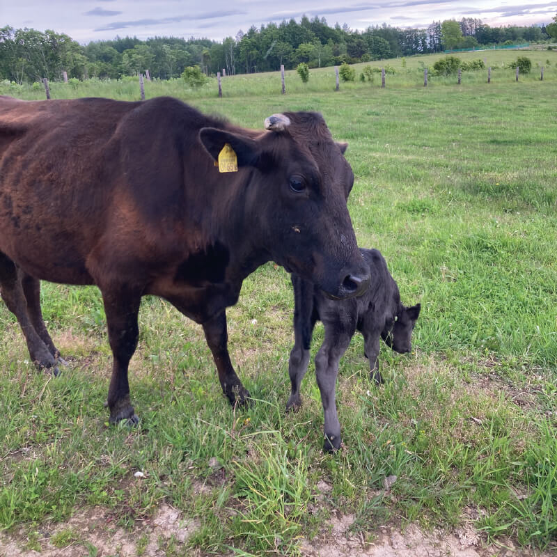 私たちは、親子で放牧する「周年親子付け放牧」を実践しています。母牛と子牛が一緒に過ごすことで、子牛は母牛から愛情をたっぷり注がれ、健やかに育ちます。この自然な育成方法は、牛たちの心身の健康を支えると同時に、持続可能な農業にも貢献しています。